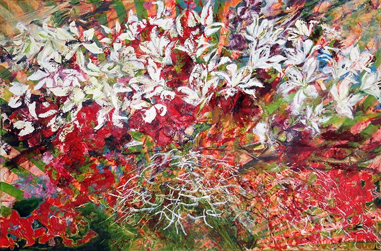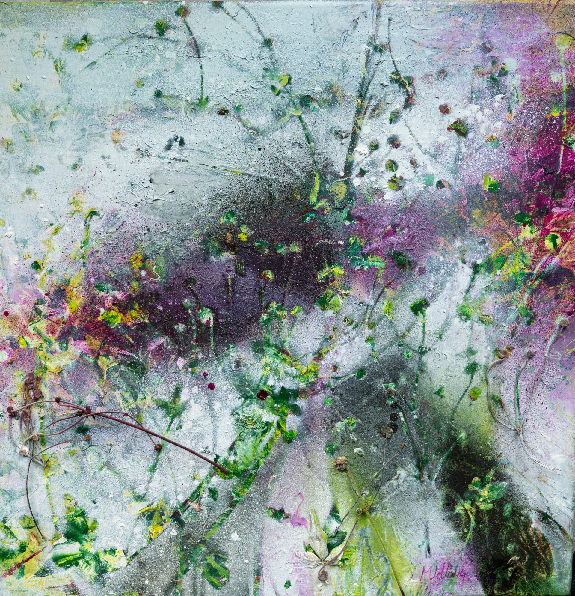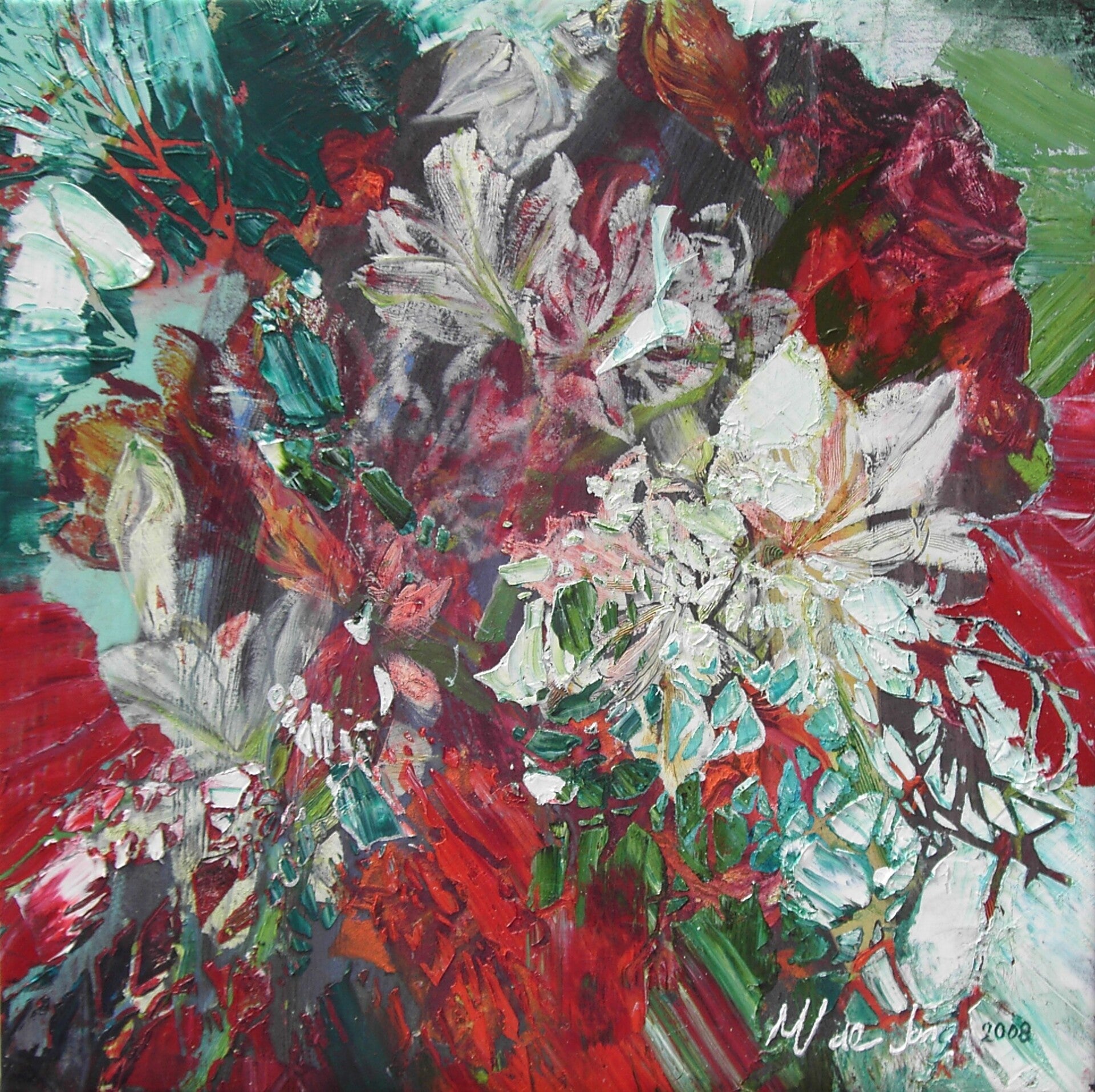 Hier en daar raap ik wat op, zo verzamel ik kunstschatten, vondsten voor op mijn atelier. De natuur als dankbaar onderwerp stelt mij nooit teleur. De meest verdorde tak vindt zo soms een nieuw bestaan als figurant op een van mijn doeken. Een nieuwe bestemming, een tweede leven. Tevreden ben ik als het er op doek zo uitziet zoals ik het tijdens de wandeling heb ervaren. Hier en daar een scheve tak, het hoeft niet recht te zijn. Niet volmaakt maar levendig.
